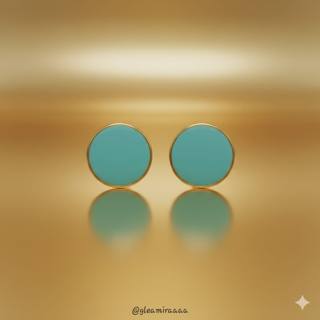 nject a vibrant splash of tropical charm into your look with these delightful stud earrings. Each piece showcases a smooth, opaque resin dome in a refreshing turquoise blue, reminiscent of clear Caribbean waters. Framed by a polished gold-toned bezel, these cheerful earrings are perfect for adding a playful yet sophisticated accent to your outfit, bringing a touch of sunny elegance to any day.