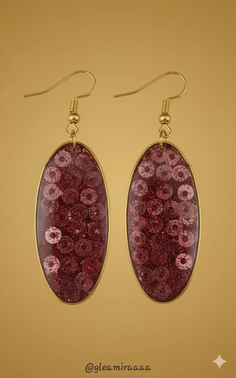 Add a touch of sparkle to your look with our Crimson Glow Oval Earrings — featuring deep red sequins encased in a glossy finish, bordered with elegant gold detailing. Lightweight yet striking, these earrings perfectly blend glamour and sophistication, making them ideal for parties, festive occasions, or everyday elegance.