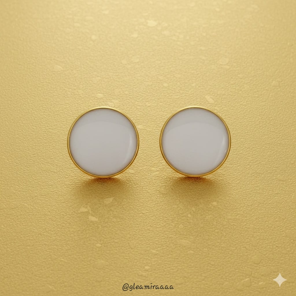 Embrace elegant simplicity with these pristine stud earrings. Each piece features a smooth, opaque resin dome in a crisp, radiant white, reminiscent of a luminous full moon. Expertly set within a gleaming gold-toned bezel, these minimalist earrings offer a timeless and versatile appeal. Perfect for adding a clean, sophisticated touch to any outfit, they provide a fresh and bright accent that complements any style.