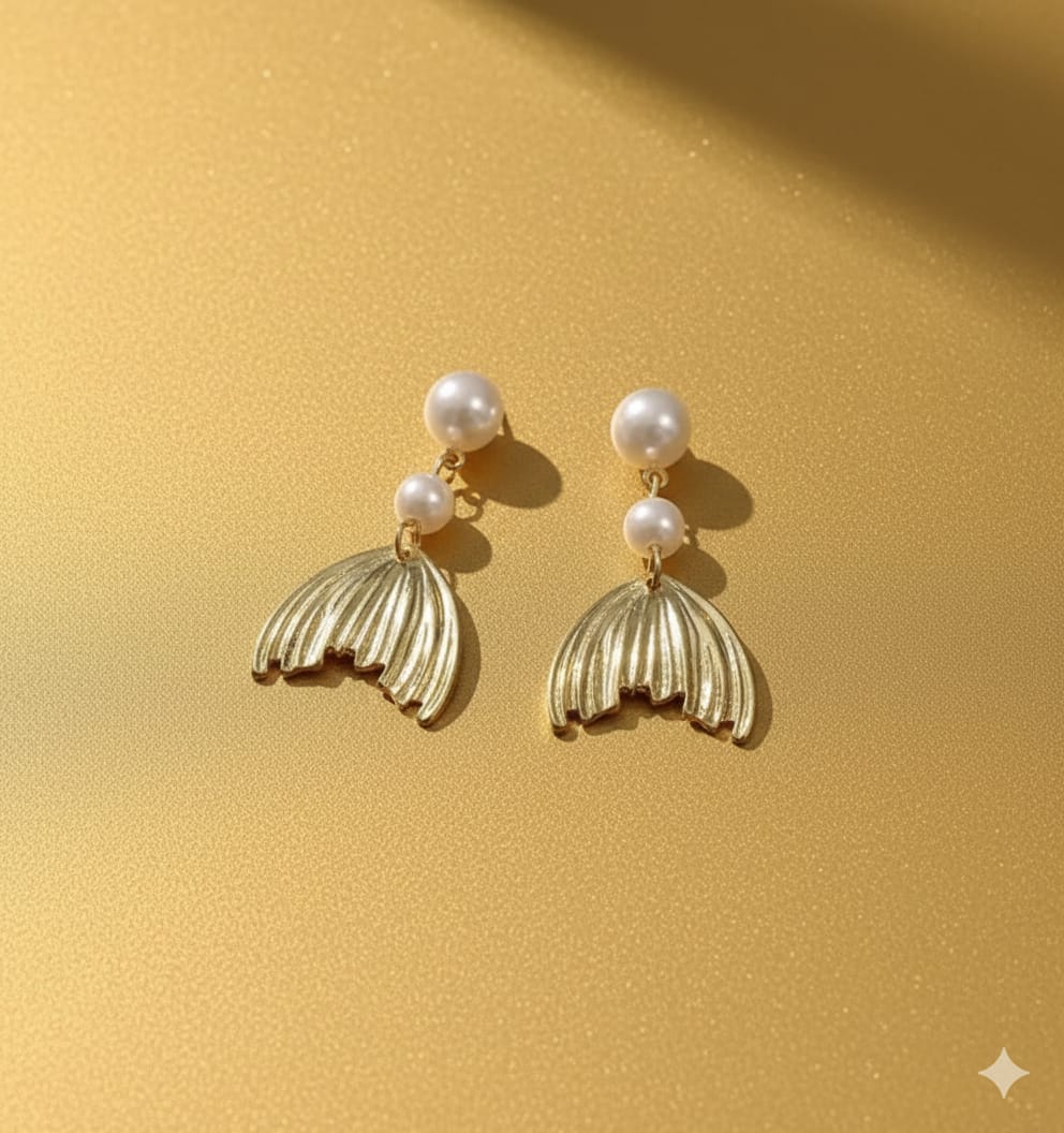 mermaid tail pearl drop earringsMermaid Tail Pearl Drop Earrings