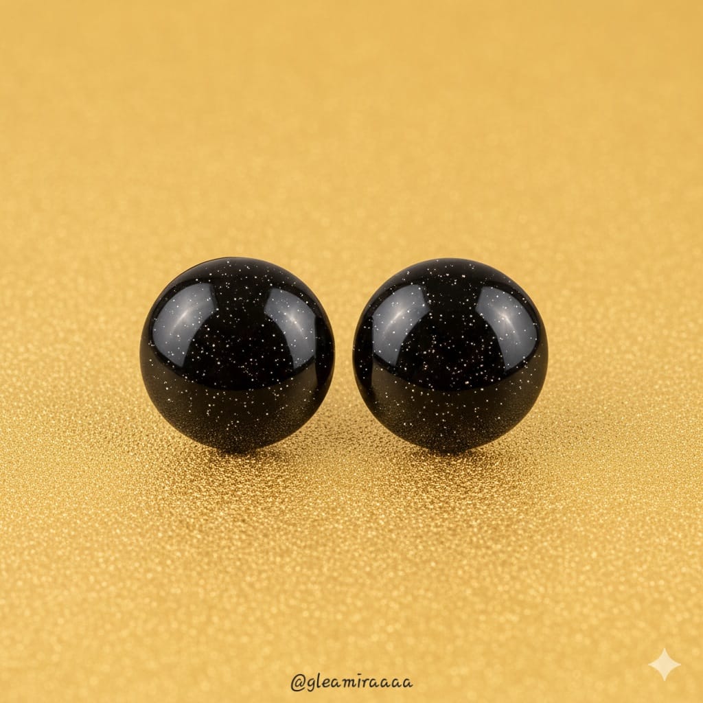 These striking circular cabochons are crafted from deep black goldstone, renowned for its captivating sparkle. The polished, domed surface reveals countless tiny, reflective inclusions that glitter like a starlit night sky, creating a mesmerizing effect against the rich, dark base. Perfect for sophisticated jewelry designs such as earrings or rings, or as elegant accents in various craft projects, adding a touch of cosmic allure and subtle luxury