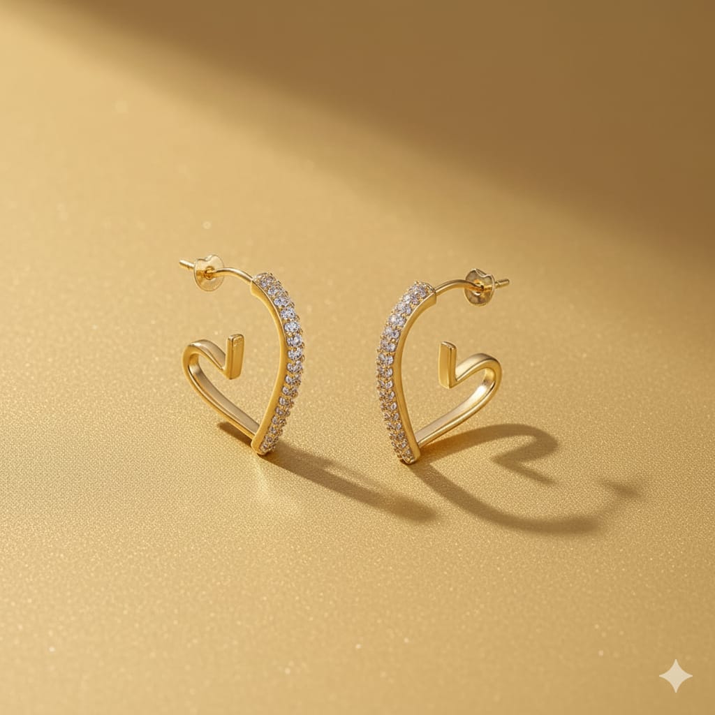 Stylish and romantic, these gold-toned hoop earrings are shaped like open hearts, with one side elegantly adorned with a row of sparkling pave crystals.