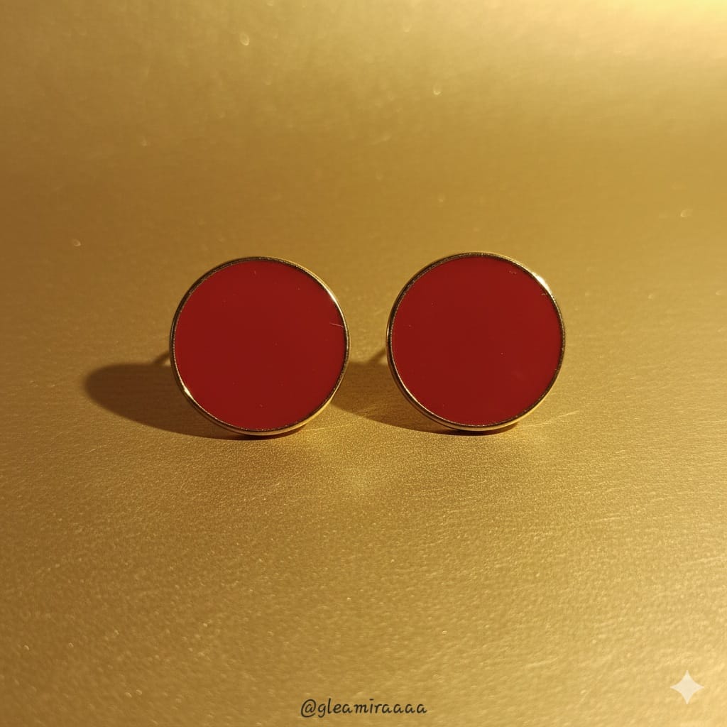 Make a bold statement with these striking and sophisticated stud earrings. Each piece features a smooth, opaque resin dome in a captivating, rich ruby red, offering a vibrant burst of color. Expertly set within a polished gold-toned bezel, these minimalist earrings are a timeless accessory. Perfect for adding a confident pop of passionate color and classic elegance to both casual and formal ensembles.