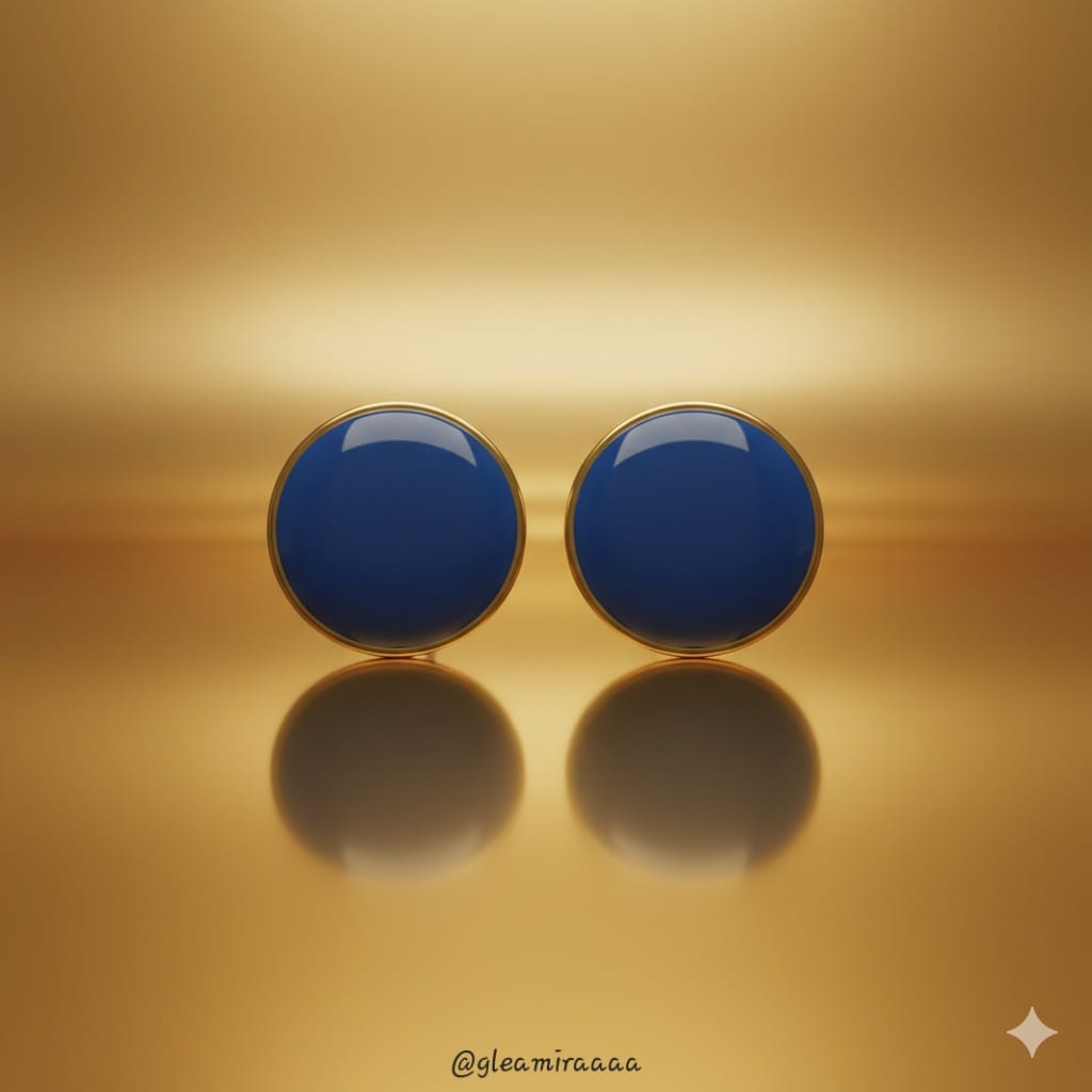 Embrace a sense of calm sophistication with these beautifully hued stud earrings. Each piece features a smooth, opaque resin dome in a rich, deep sapphire blue, evoking the timeless elegance of the precious gemstone. Expertly set within a polished gold-toned bezel, these minimalist earrings offer a striking yet serene pop of color. Perfect for adding a refined statement to any outfit, from business casual to evening wear.