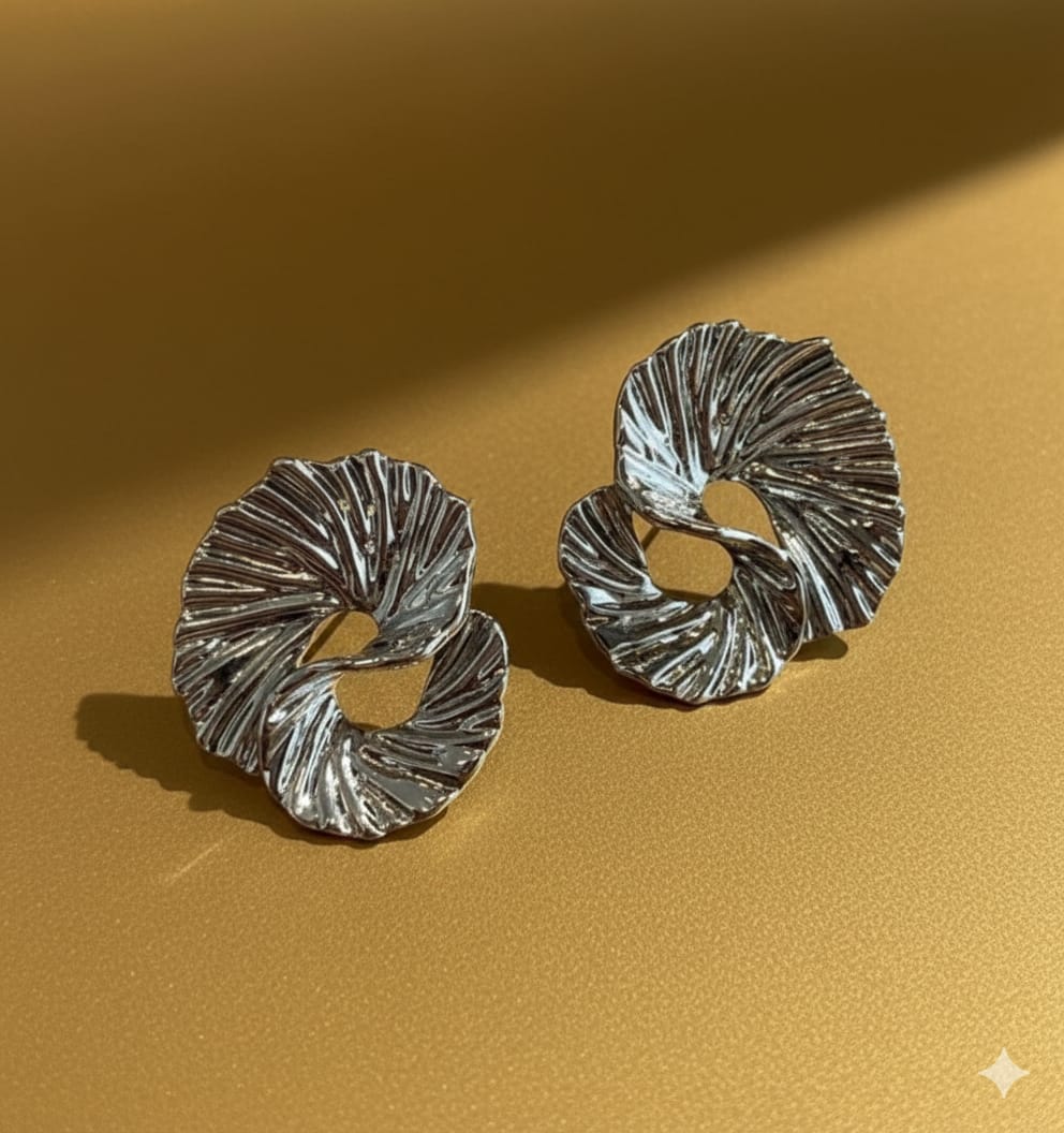 Modern and artistic, these silver-toned earrings boast a captivating pleated, fan-like design that creates a dynamic and textured statement