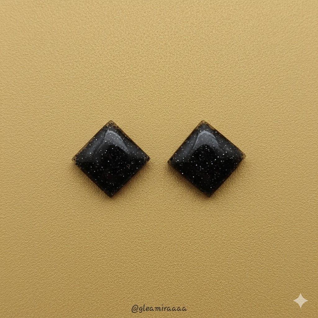 These sophisticated rhombus-shaped cabochons are made from dark, shimmering goldstone, capturing the essence of a starry night sky. The polished, flat-backed facets beautifully showcase the embedded reflective particles, creating a subtle yet captivating sparkle. Ideal for contemporary jewelry designs like earrings, pendants, or as unique accents in crafts, these pieces add a touch of modern elegance and cosmic mystery to any creation.