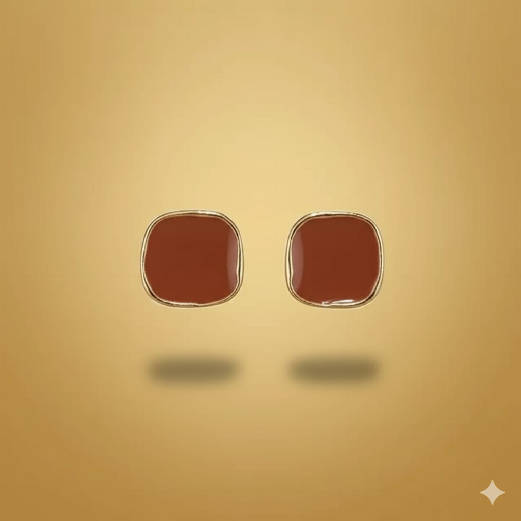 Simple yet chic stud earrings with a rounded square shape, filled with a smooth, warm terracotta-colored enamel and framed in gol